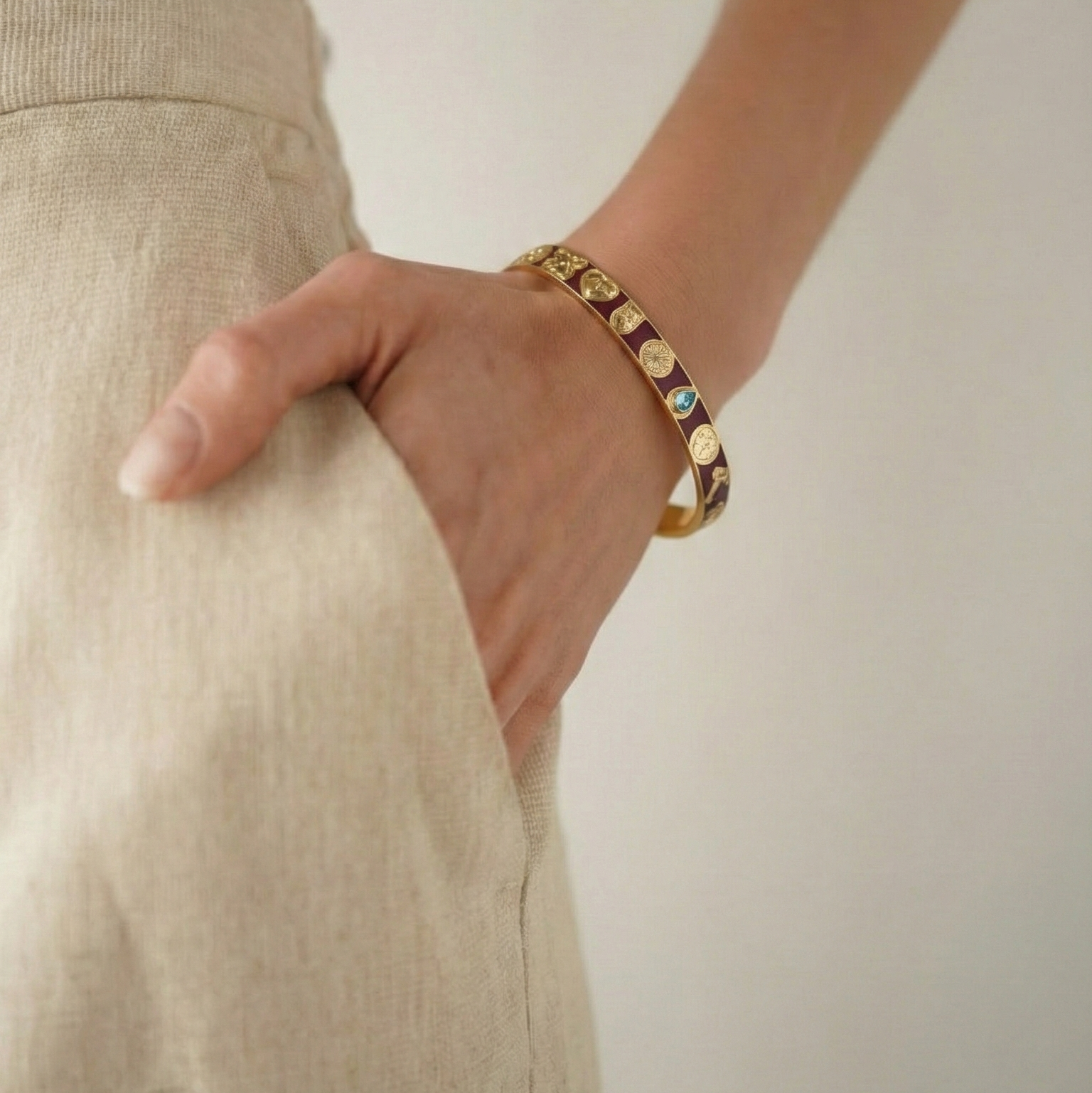 Denne bourgogne enamel armring er en klar bestseller som er smuk alene eller med et ar vores andre armbånd.